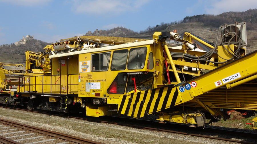 Dégarnisseuse RM 80-92 - NL-RTS 99 84 9414 602-5 Swietelsky en gare de Dürnstein (A) le 25-03-2018