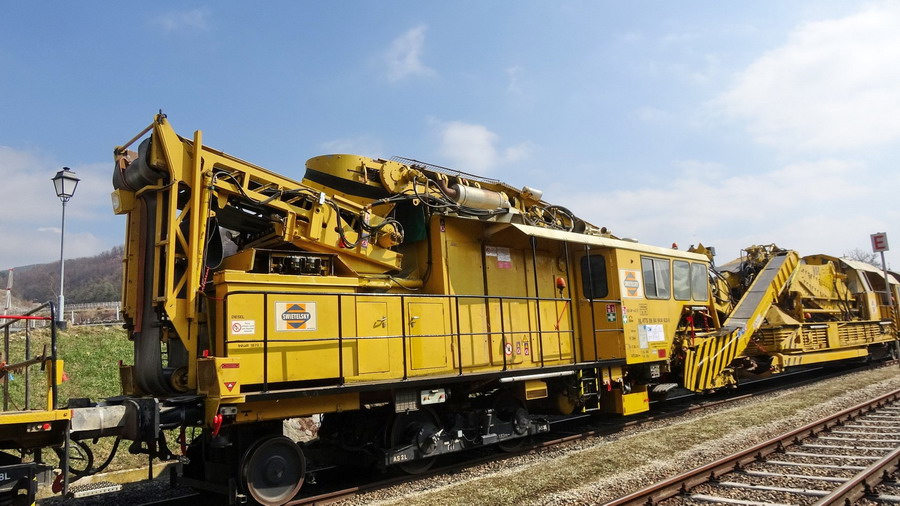 Voici la Dégarnisseuse de Plasse & Theurer de type RM 80-92 de 1992 appartenant à la société Autrichienne SWIETELSKY