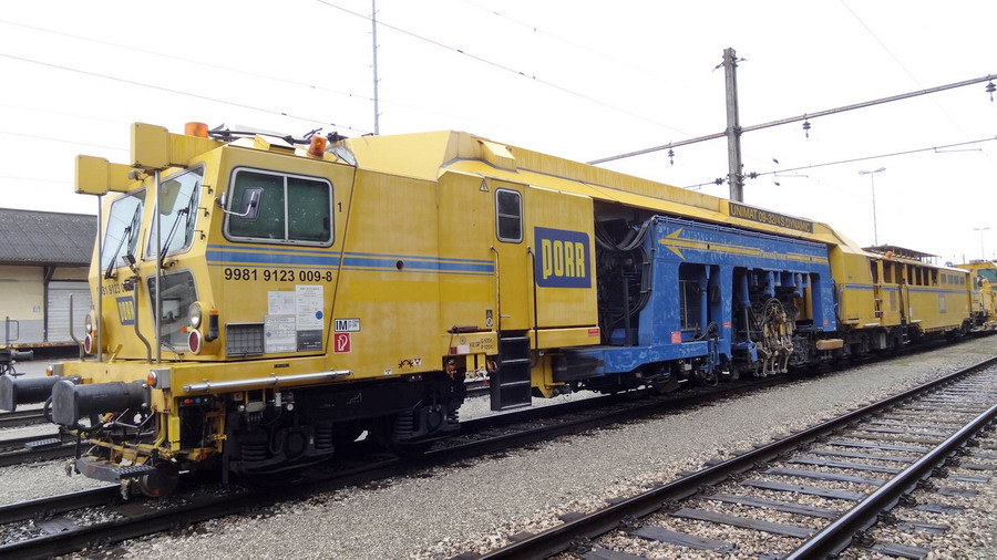 Voici la Bourreuse de Plasser & Theurer de type UNIMAT 09-32/4S DYNAMIC - 99 81 9123 015-3 A-PLA - du groupe PORR