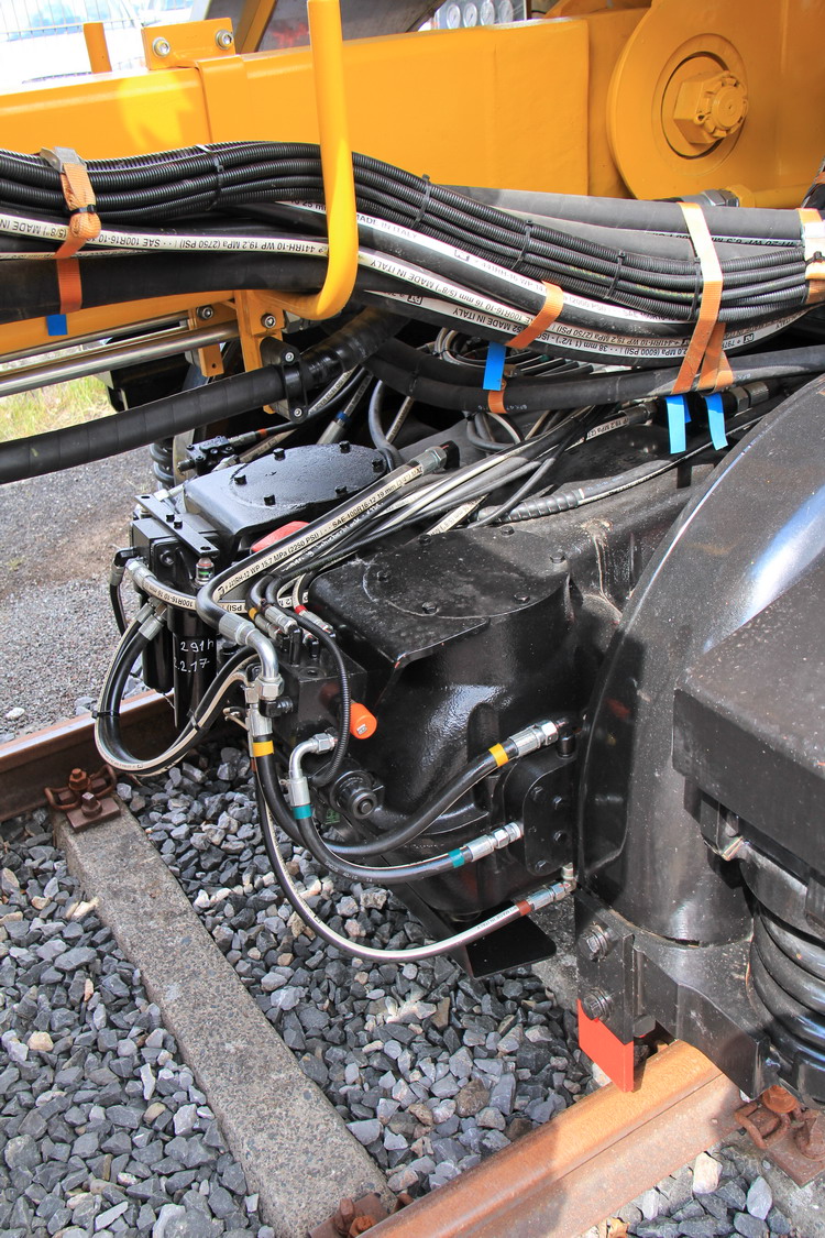 Certains détails de la nouvelle machine ont été redessinés. Cela a permis de réduire le poids de la machine d'env. 3 t. Les détails du contrôleur de programme et en particulier du système hydraulique ont été améliorés. La chaîne d'excavation (boîte de transmission à chaîne) est maintenant équipée d'une boîte de vitesses à deux vitesses et d'une pompe d'entraînement réglable en continu (0 à 100%). Par conséquent, l'excavation peut être ajustée plus précisément et il y a plus de puissance disponible. La charrue pour un nouveau ballast est sécurisée grâce à des crochets pneumatiques.