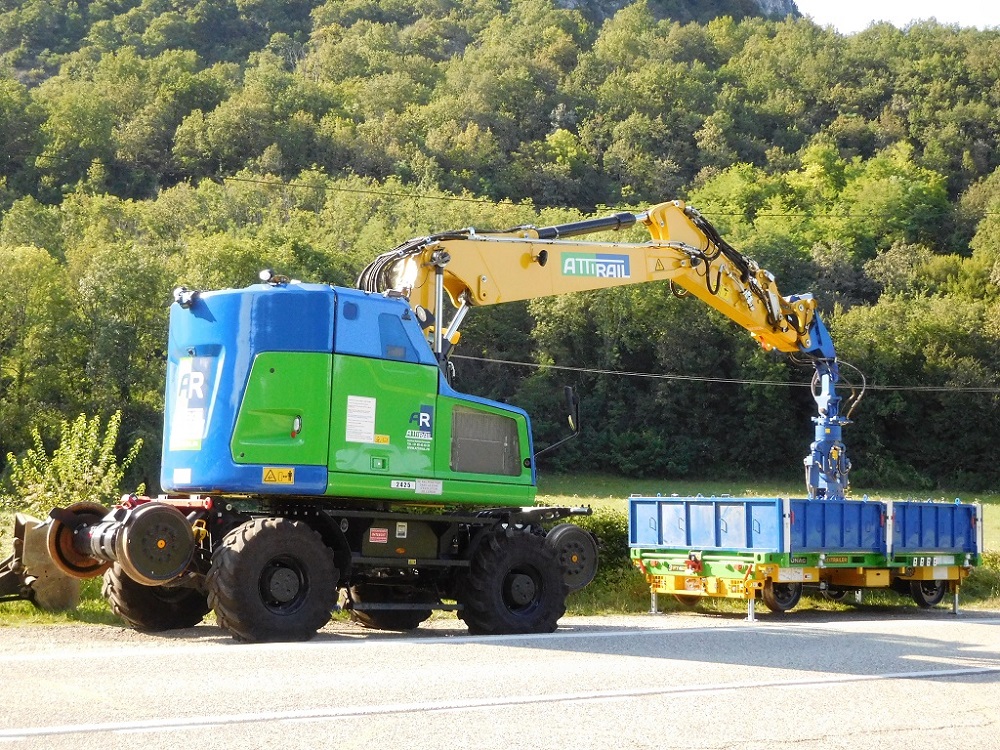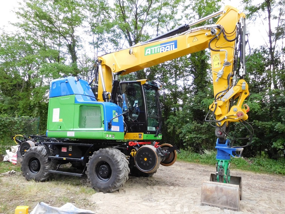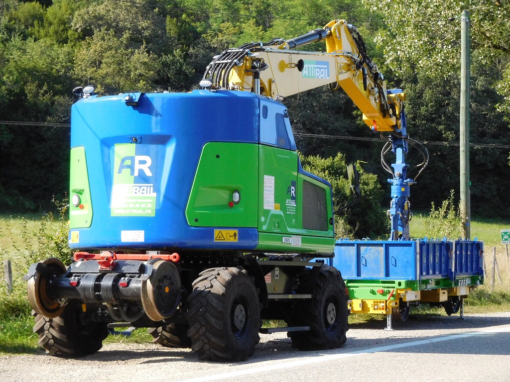Voici une pelle toute neuve (2021) pour la société Attirail, croisée ici à Pugnieu (01) en juin 2021.
