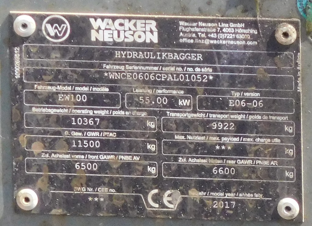 Re: Wacker Neuson EW 100 RR - WNCE0606CPAL01052 - DVF
