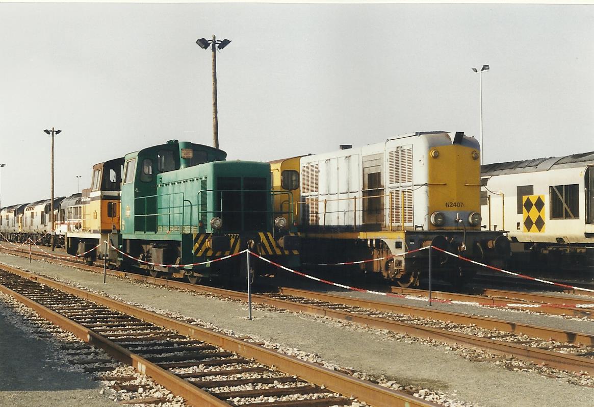 A droite la BB 62407 une ancienne hollandaise ex n° NS 2407 et en fond d'image une longue lignée de Class 37 British