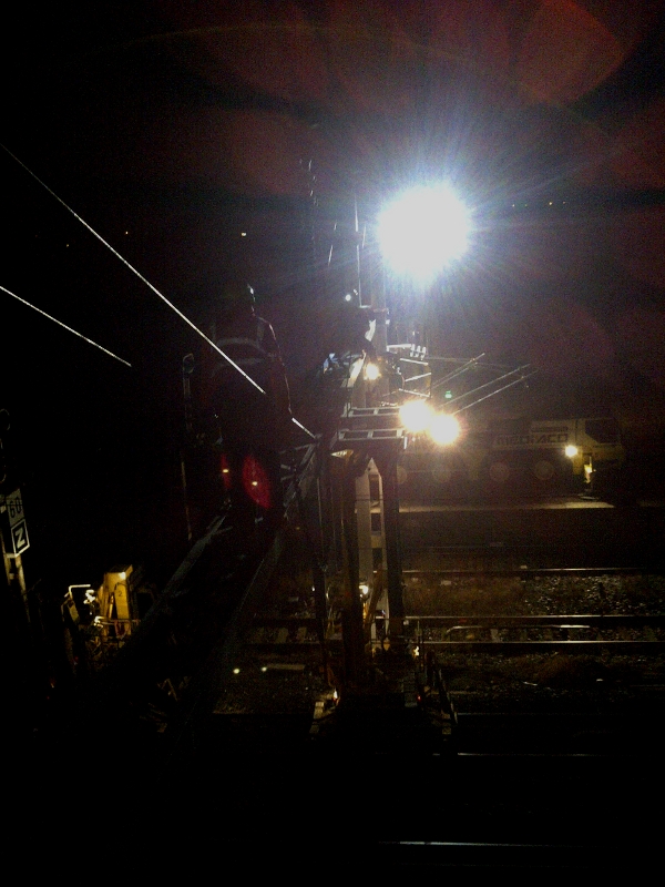 Le chantier se déroule en grande partie la nuit ! car c'est à ce moment là qu'il y a le moins de train ^^