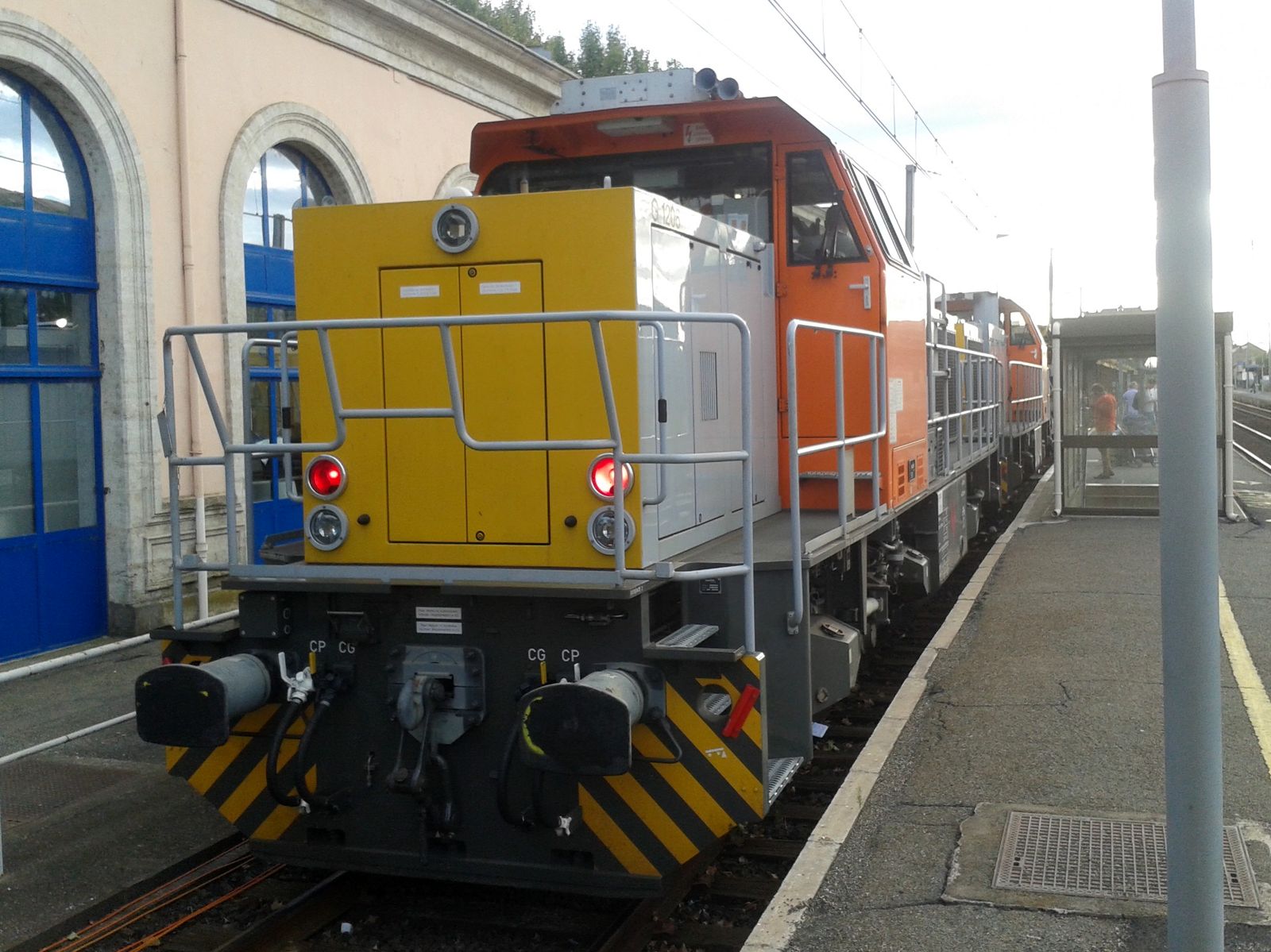 L'engin en UM avec le G 1206 1913 DFV en pousse d'un TTX garé à Agde.