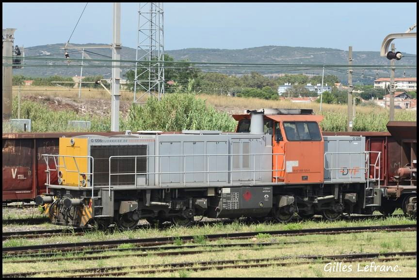 La voici garée à Sète le 19-08-2016 pour un train de ballast pour la base de travaux de Générac
