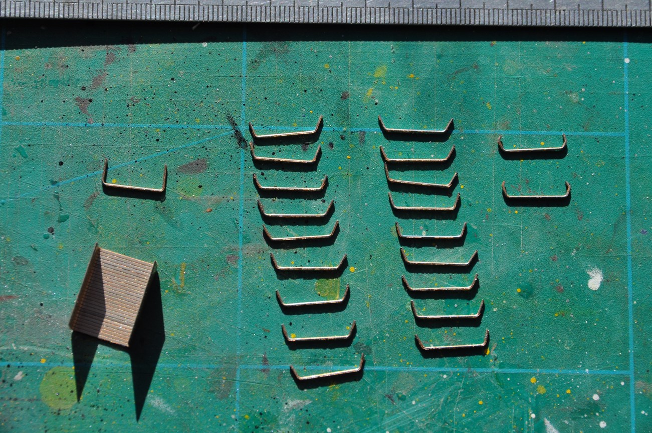 Pour les rambardes de coursives, il me manquait un peu de profilé rond métallique. Je n'ai donc pas peint les deux ensemble. Grosse erreur :nonnon: , car pour retrouver la même teinte, même en ayant pris des notes, je me suis fait avoir. Va falloir repeindre le tout! :grrrr: