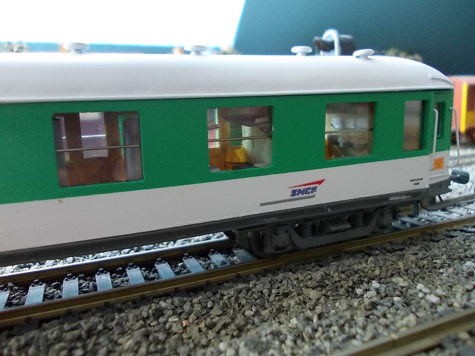 Réalisée en carte plastique avec un toit de récupération, cette ex A7 Ouest,ancienne version ,avant les uic, de la voiture de cantonnement des wagon de secours ;)