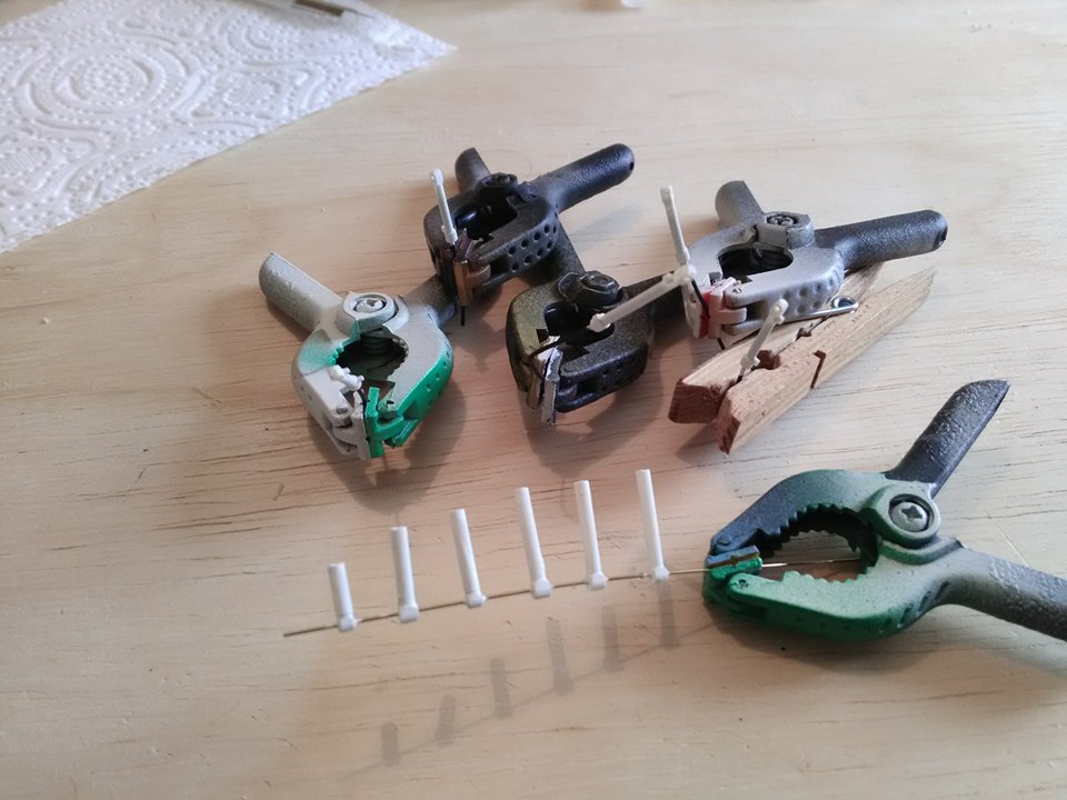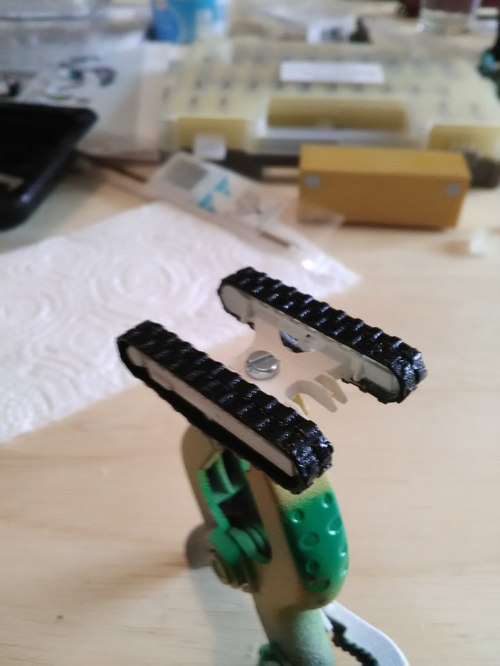 mise en peinture des pièces après perçage des différent trou pour les axes (1mm et du 0.5mm)