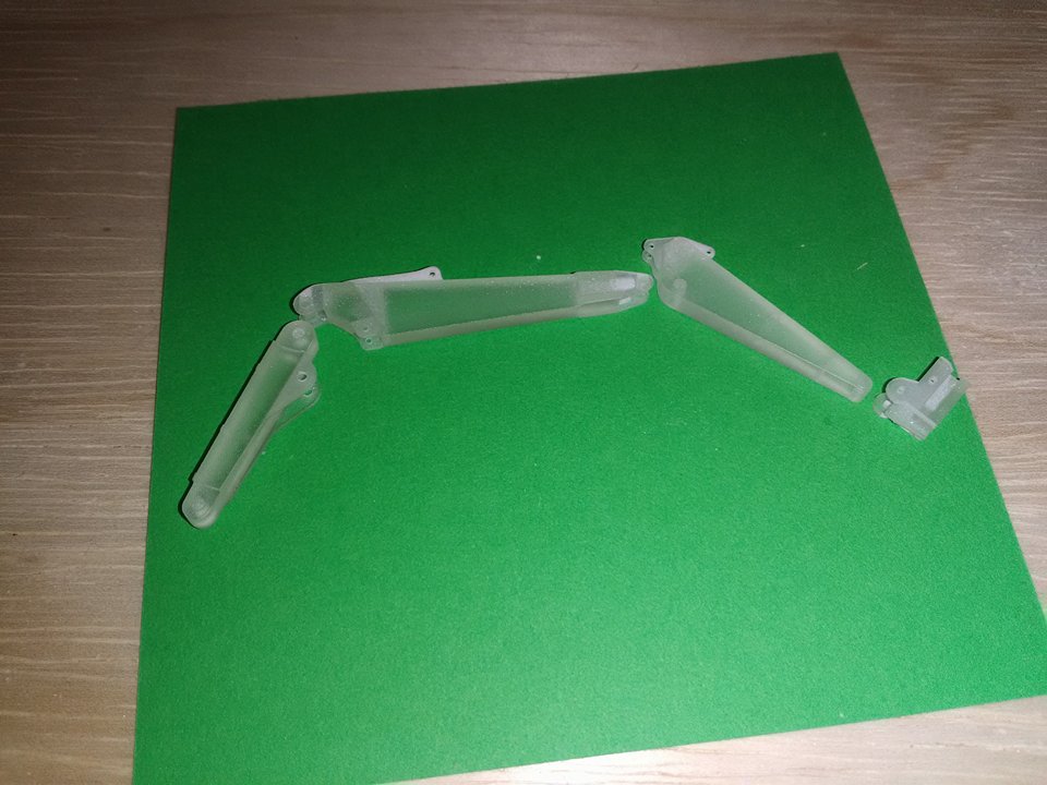la parti blanche sa vient du kit, j'ai juste refait les tubes (noir) avec du fils gainé de 0.8mm que j'ai recollé sur la basse du tube de l'axe, juste 1 vérin est d’origine car je l'ai limé (seul qui la pas cassé)