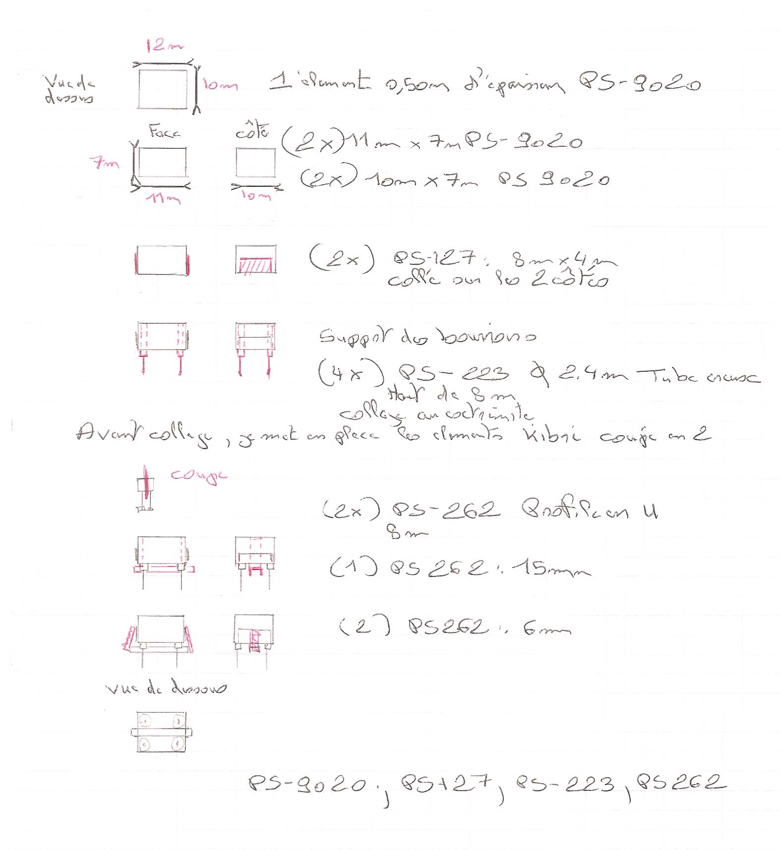 J’ai utilisé du PS262 profilé U. 2 éléments de 08.00mm positionné vertical dans le corps supérieur centré entre les bourroirs, puis un élément de 15mm pour la partie horizontal.Dépassant légérement de chaque côté.