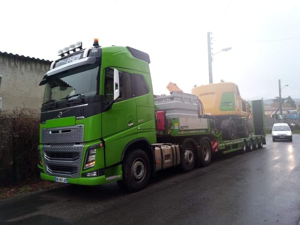 Voici l'ensemble routier avec une pelle cat en chargement le tout au couleur de l'entreprise Beolet