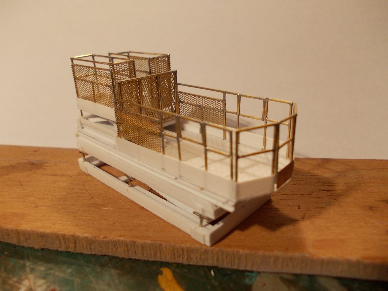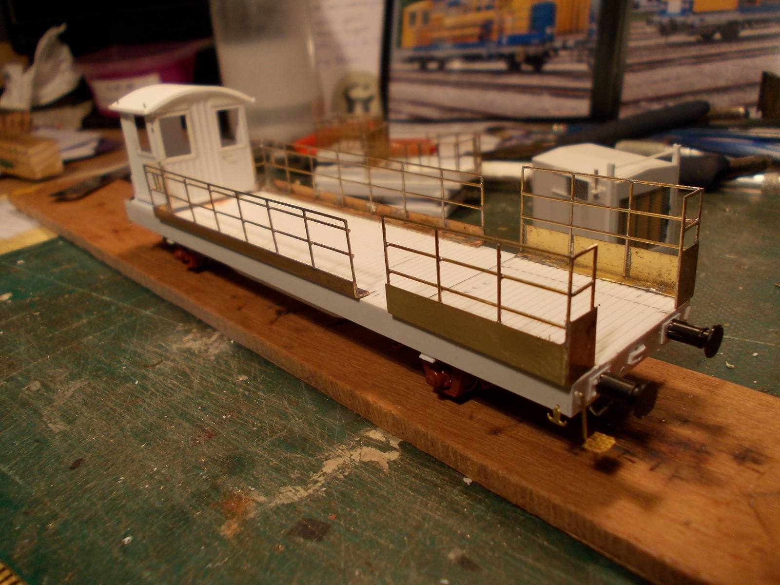 Voici ma réalisation en cours,un wagon APMC,la nacelle est en cours de finition,car comme je la veux mobile