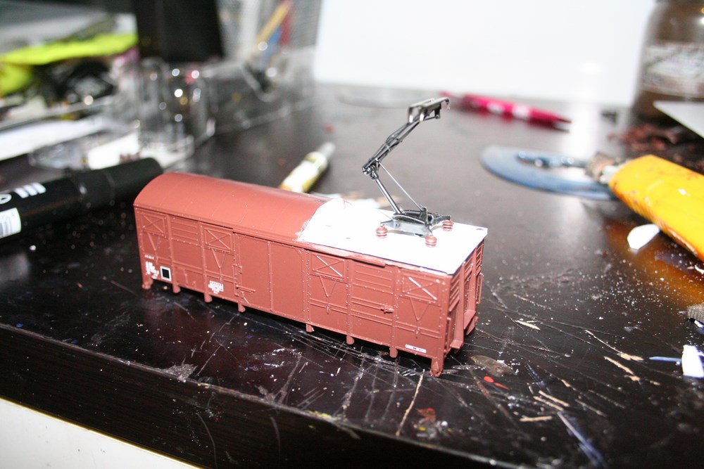 voici mon wagon graisseur de caténaires en cours de construction.Je suis parti sur une base piko , COUVERT TYPE Gs 4