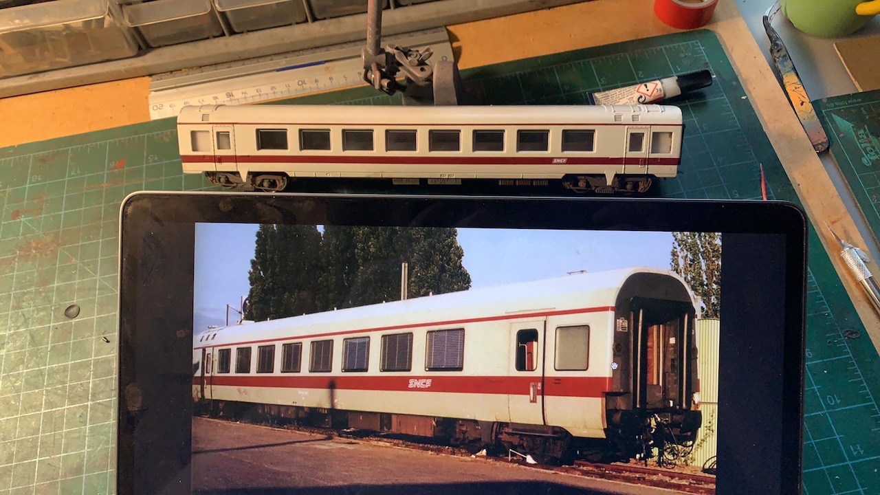 Oui c'est une voiture grand confort Jouef transformée en voiture bar comme la réelle car Jouef ne l'a pas faite.Le bas de caisse a été complétement refait comme la réalité et les marchepieds en laiton m'ont été inspirés par LS