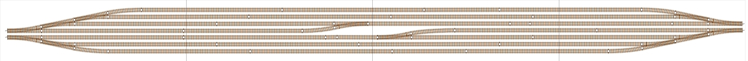 Alors j'ai multiplié les essais pour arriver à la solution ci-dessous qui respecte assez le plan réel, ce que je souhaitais. Bien entendu, j'ai compressé les distances, et je n'ai pas su empêcher la présence d'un aiguille sur la jonction de plusieurs modules. Il va donc falloir que je vérifie sur les modules que cette position soit possible. Si c'est OK, l’aiguille sera fixée sur une fine planche de contreplaqué amovible, à l'instar de ce qu'a réalisé Jacques Le Plat pour ceux qui ont suivi la construction de son superbe réseau.