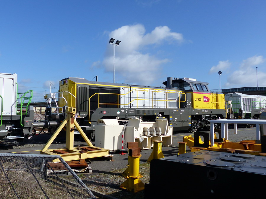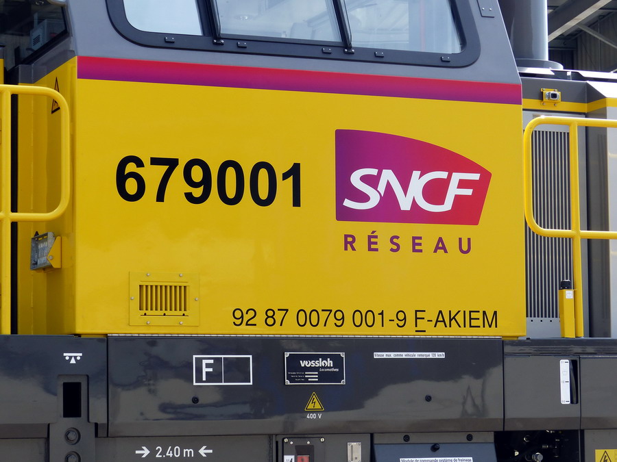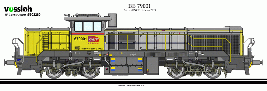 La traduction en francais Voici le 'BB 79000' - à propos des nouvelles locomotives Akiem pour la SNCF Infra Il s’agit de l’un des contrats les plus importants pour Vossloh à Kiel: le développement et la construction de la nouvelle génération de locomotives de manœuvre et de transport de marchandises pour les chemins de fer français, sur le modèle Vossloh DE18. Le 07.01.2019, une locomotive de ce type a été vue à l'extérieur, lors d'une première course.