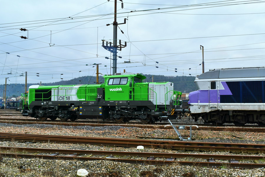 Le 25.09.18, les deux DE18 Vossloh : 5502352/2018 et Vossloh 5502353/2018 identiques ont initialement effectué un test de