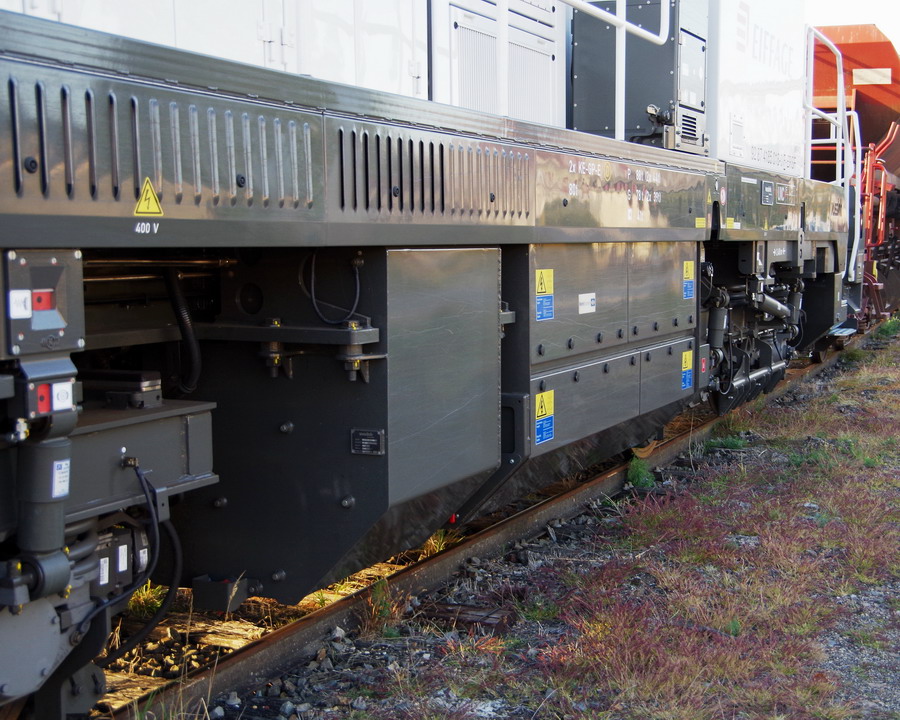 avec une rame de wagons plats à bogies de la tranche 33 87 3988 000-7 MF 712 à 099-9 MF 811 pour le transport