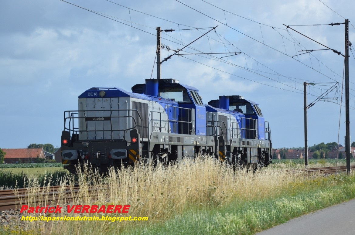 La voici en tête après avoir récupérée la DE 18 / 004-6 en manœuvre pour la récupération du wagon C N° 2 / 99 87 9 310 525-0 pour une mise en tête de la rame WIP Colas Rail :