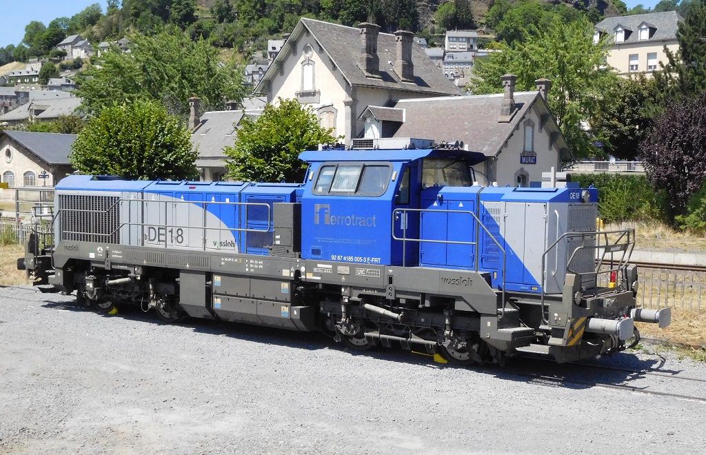 La revoici en gare de Murat (15) dans le cadre des travaux du CPER Aurillac-Arvant en Juillet 2022 :