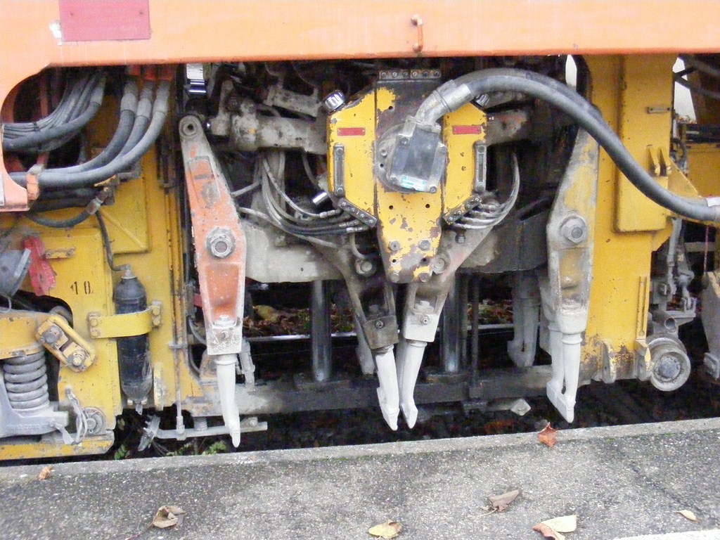 Quelques photos de l'attelage entre la bourreuse et l'élément comportant l'autre cabine de conduite.