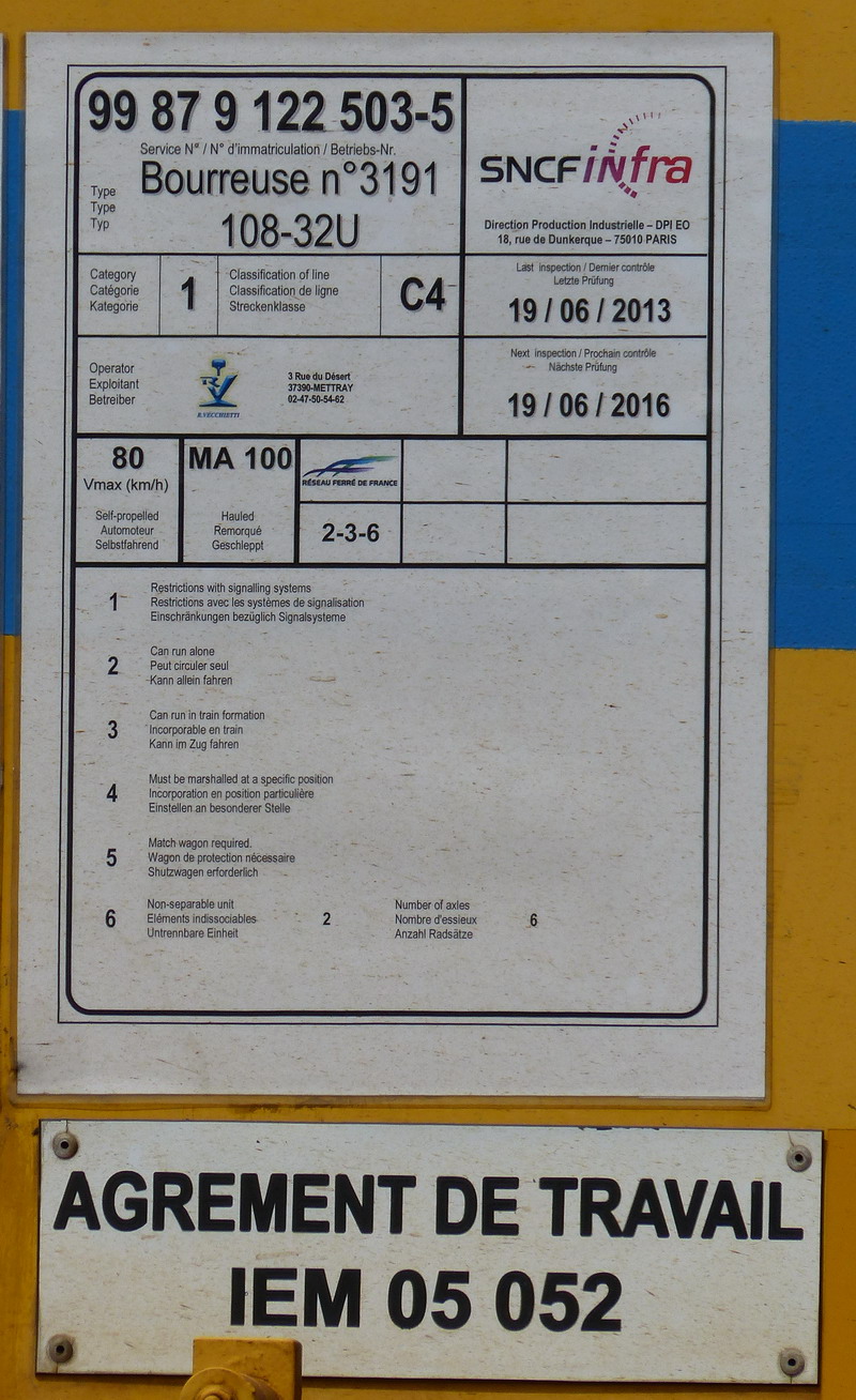 Voici la Bourreuse de ligne Vecchietti 99 87 9 122 503-5 type 108 32 U N°3191