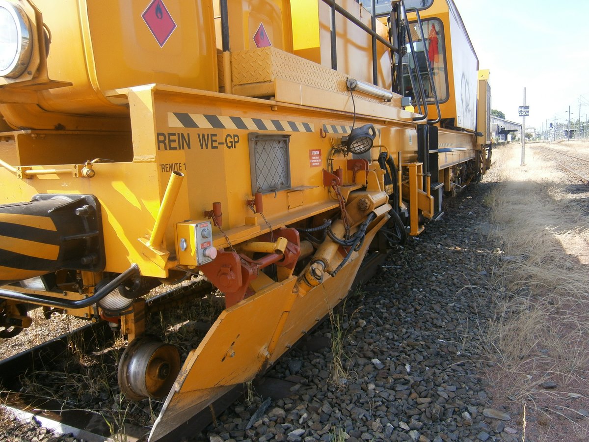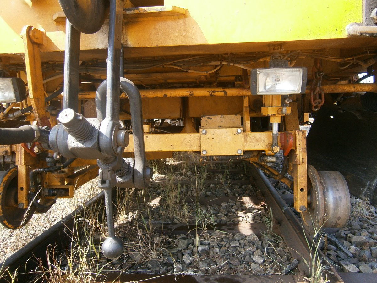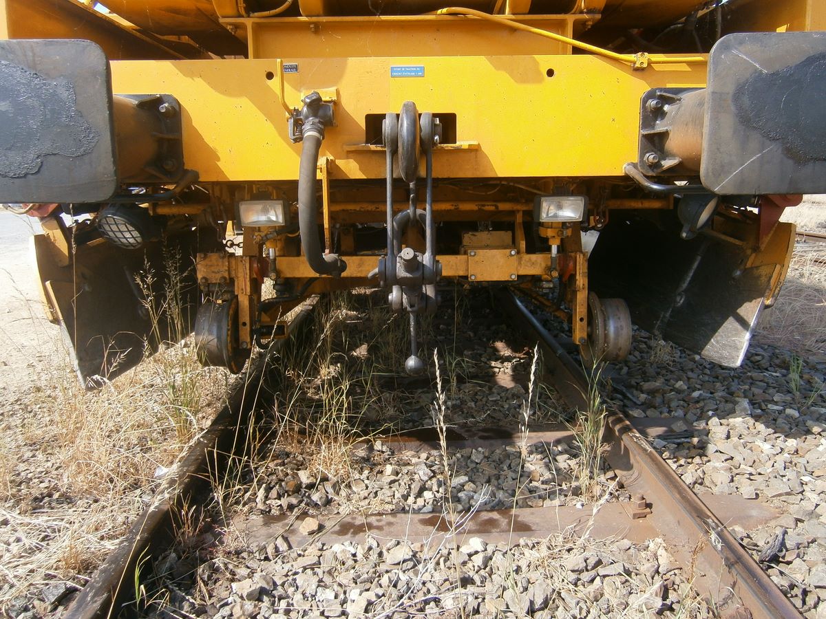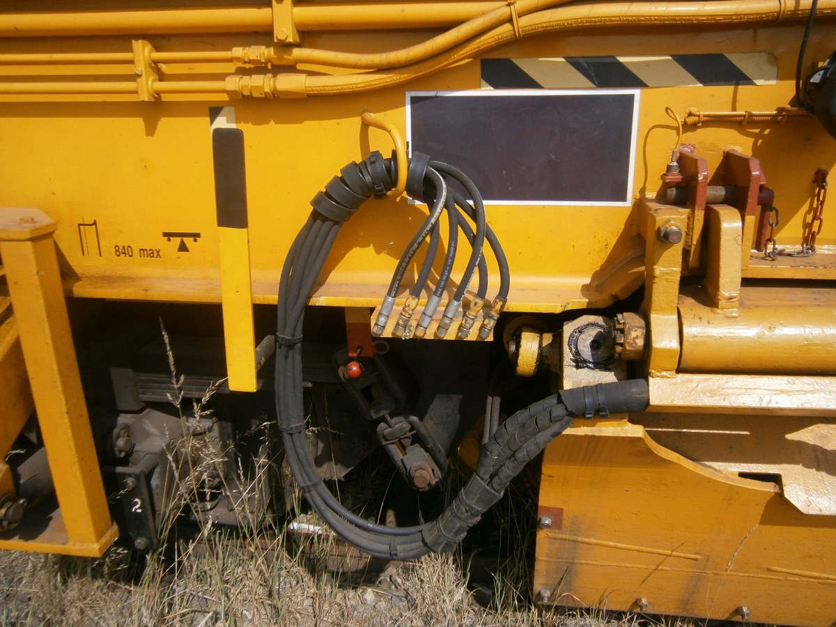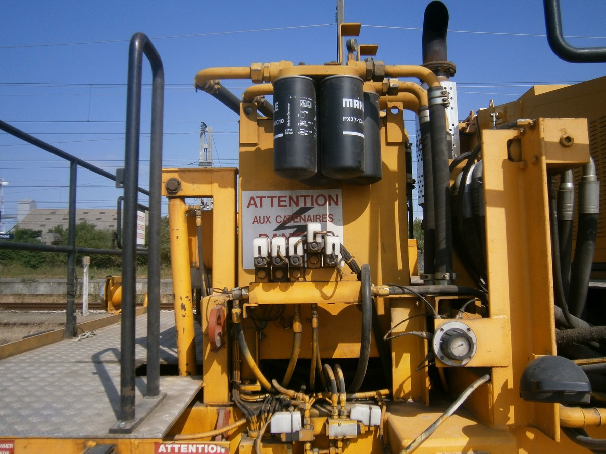 Voici une Bourreuse Combi 20 non identifiée - Point d'attache Elog Bretagne avec la voiture 80 87 979 3 305-9 Uas H55 0 SNCF-RN