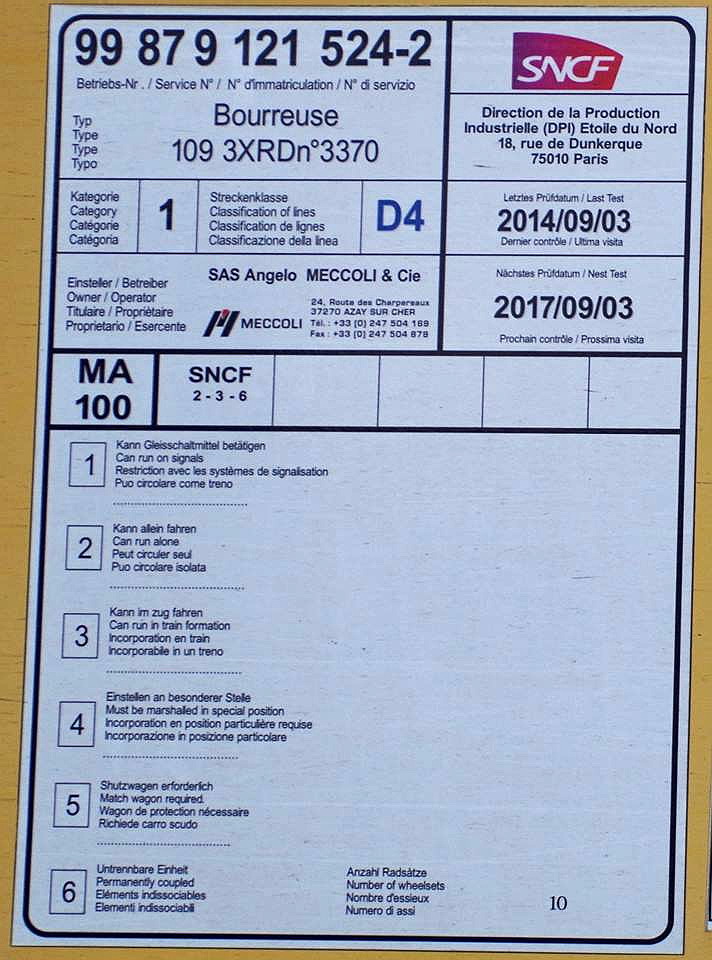 109 3XR Dynamic - 99 87 9 121 524-2 de Framafer n°3370 année de construction