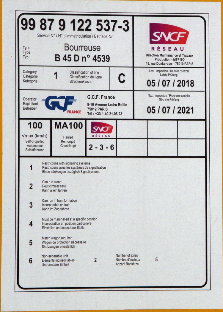 99 87 9 122 537-3 B45D (2019-08-07 gare de Saleux) Matisa n°4539 GCF (3).JPG
