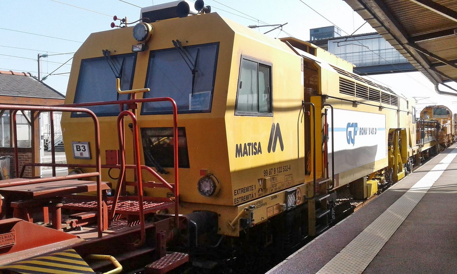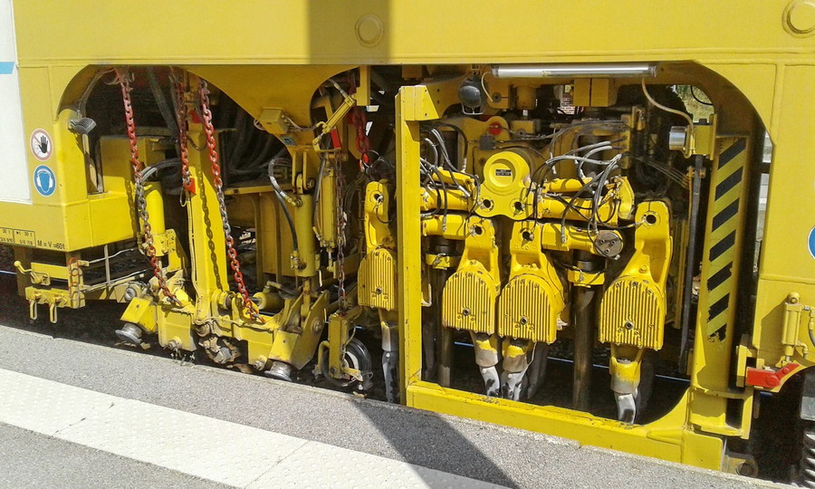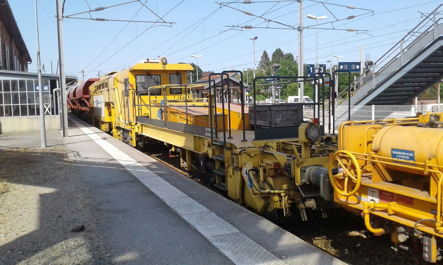 Photos de Gtr Lefèvre pour du bourrage après les travaux de remplacements des traverses en gare de Poix de Picardie (80)
