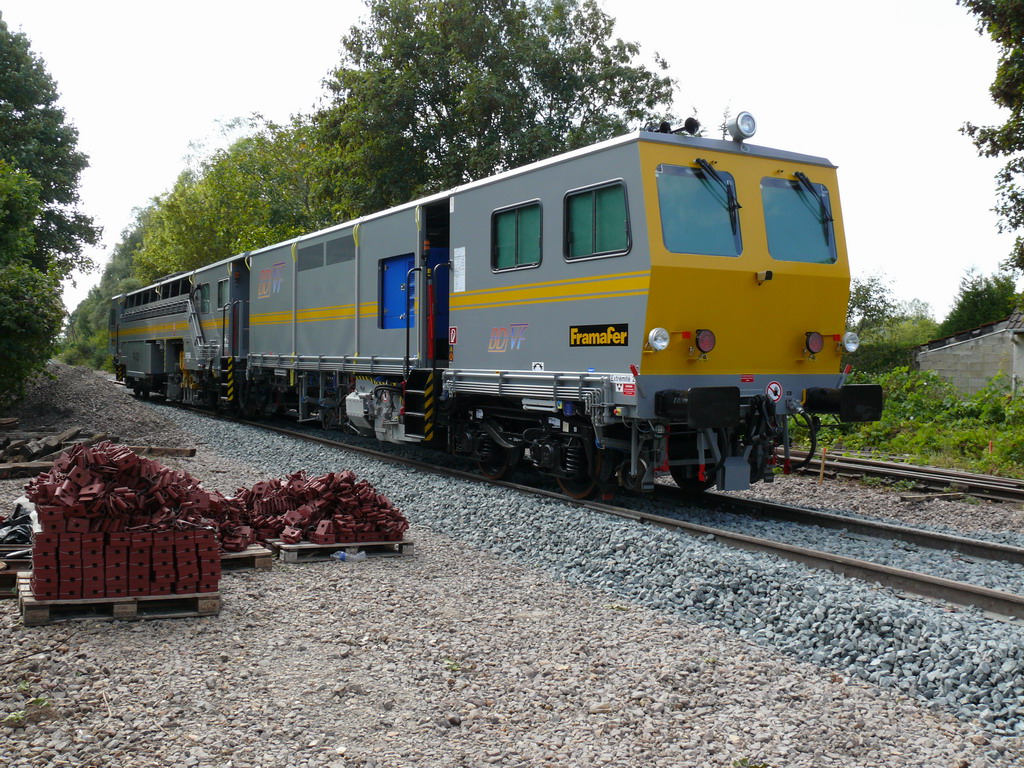Décidément, le RVB de la ligne Montereau- Flamboin aura été riche en nouveautés pour moi. Après le G1206 de DVF , voici une bourreuse toute toute neuve pour BDVF. La couleur est originale est permet de repéré ces machines parmi les autres canaris!!