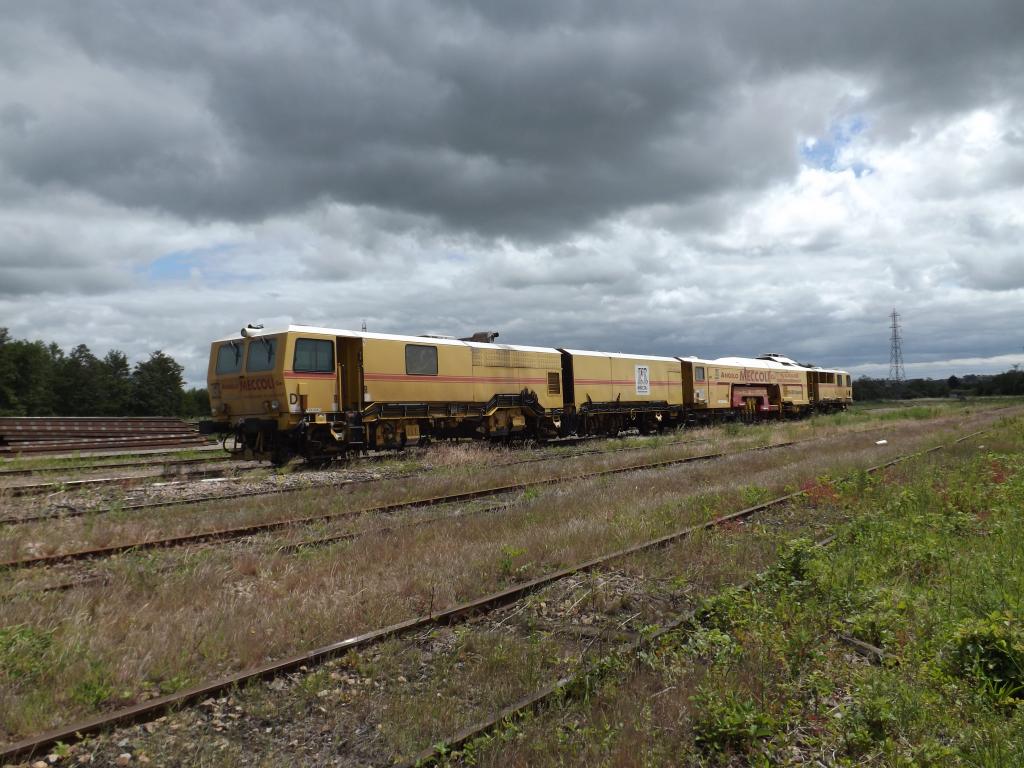 Voici la bête de 166t de Meccoli Bourreuse 109 3XR Dynamic - 99 87 9 121 501-0 qui arrive du nord pour un garage à l'ouest de la zone de