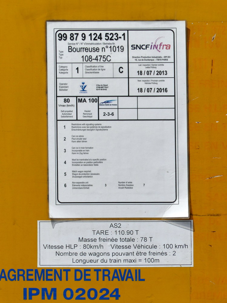 Voici la Bourreuse de retour du chantier de modernisation de la ligne Plouaret-Lannion de fin 2014 (agrément de travail PM 02024)