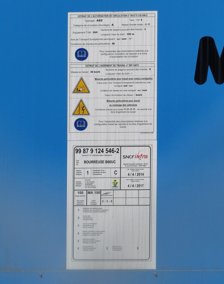 Voici une info du 16-01-2015 des ateliers de Matisa France à Sens (89) sur la 66 UC LGV avec son numéro du