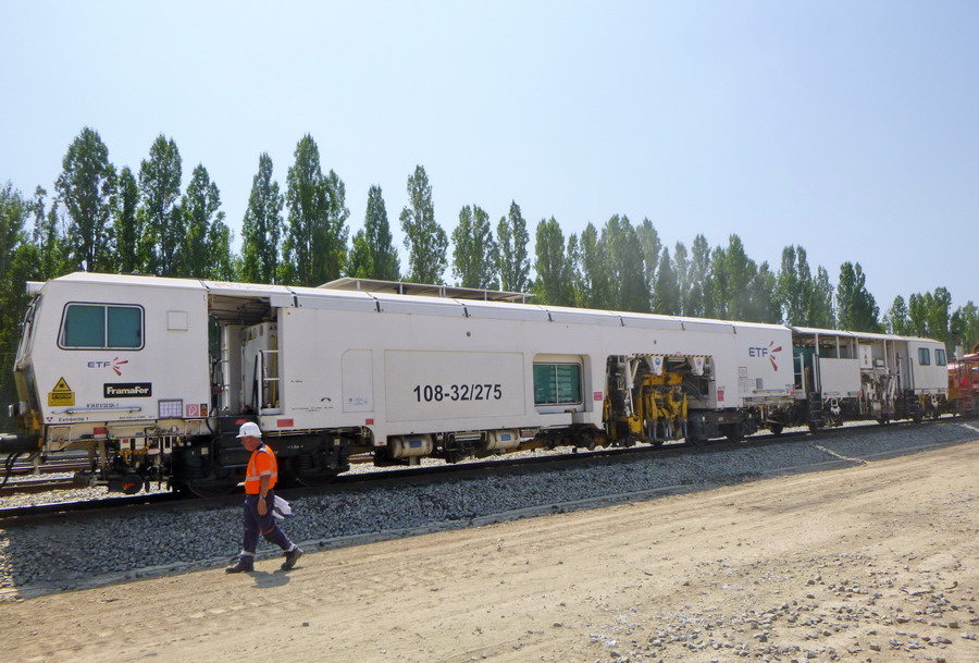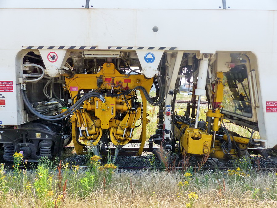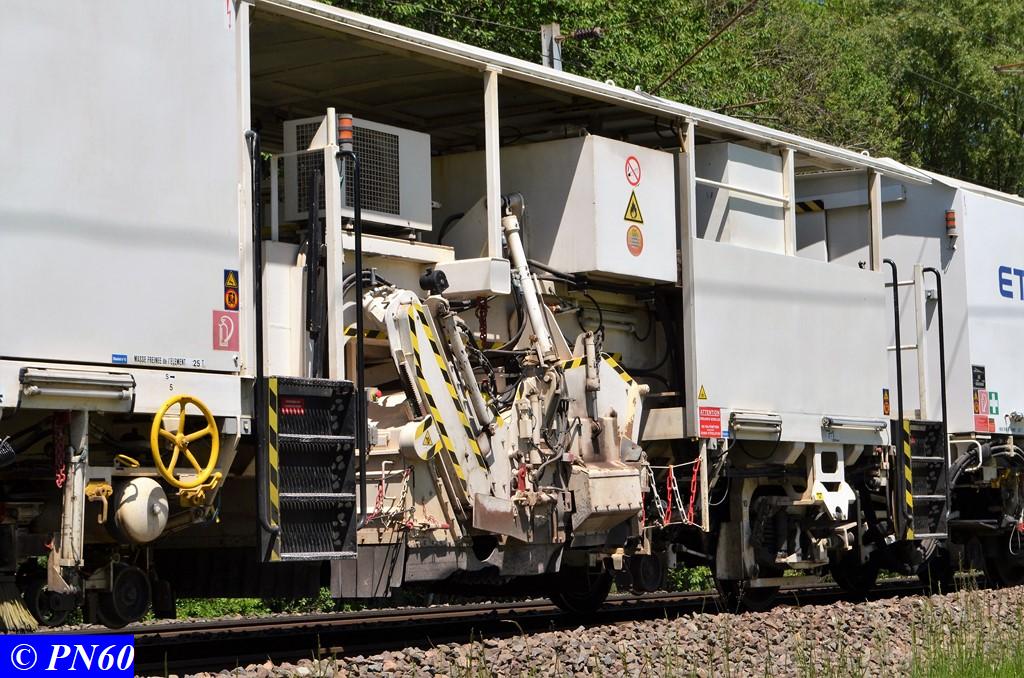 La bourreuse-niveleuse-dresseuse de voie courante et d'appareil de voie 108-32/275 de la société ETF vu à Bourmont le 25 mai 2017 lors de travaux sur la ligne 15.