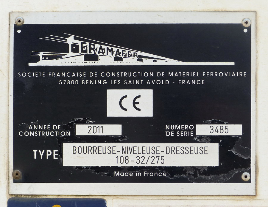 Bourreuse Framafer 108 32/275 - 99 87 9 122 524-1 - ETF à Chaudenay RVB Ligne 15 Voie 2 en juillet 2017.