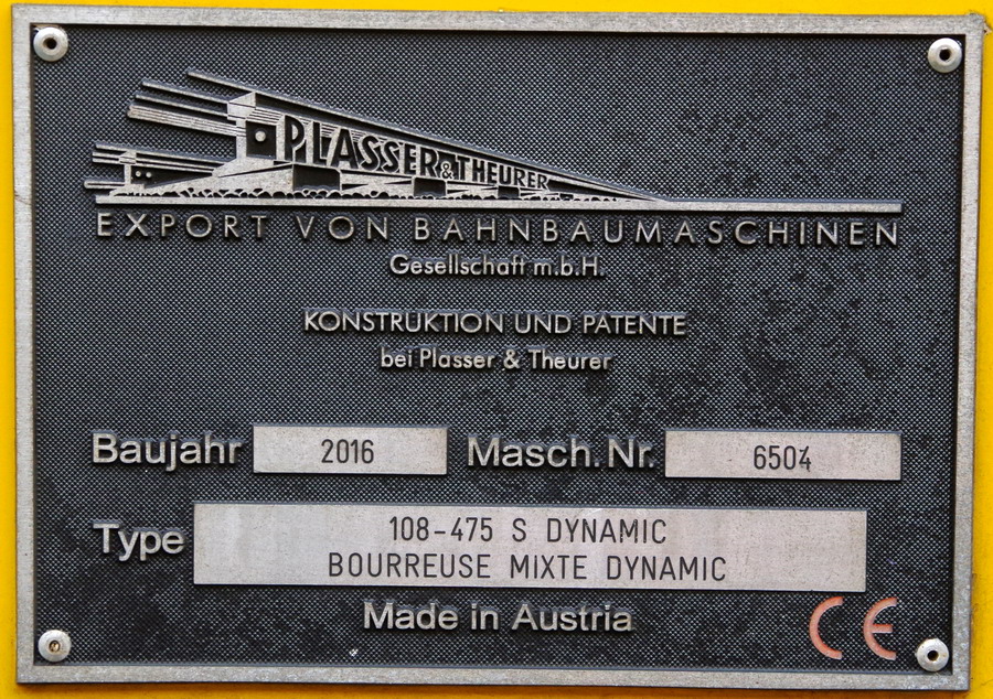 La voici avec la plaque contruceur Plasser & Theurer n°6504 de 2016