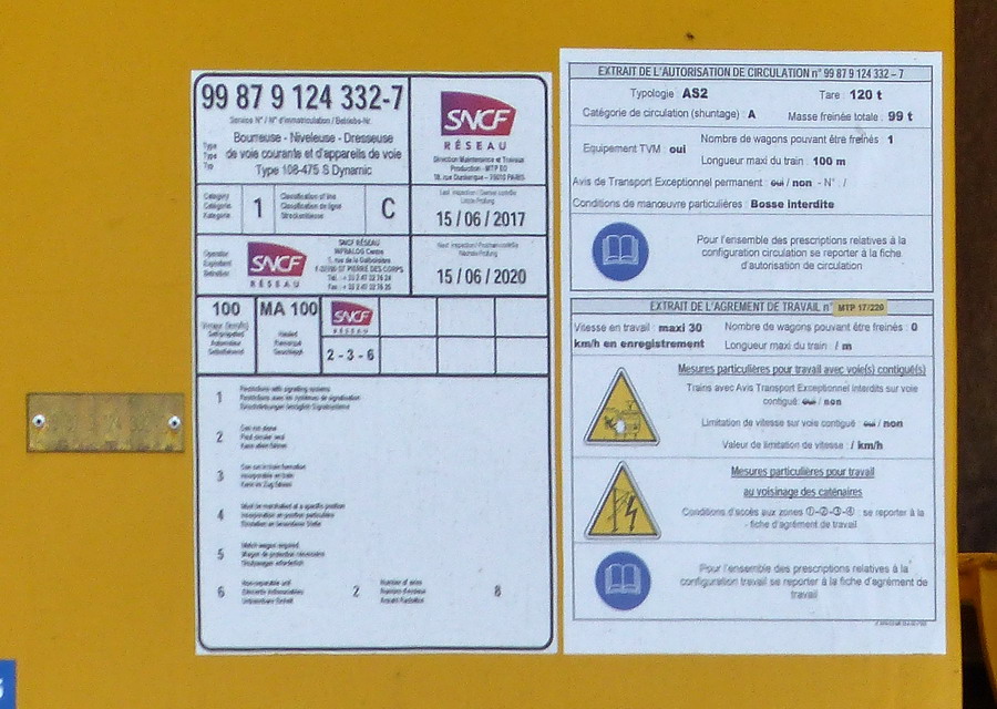 99 87 9 124 332-7 de Plasser & Theurer n°6576 - 2017 pour SNCF RESEAU Infralog Centre Tours point d'attache SPDC (37)