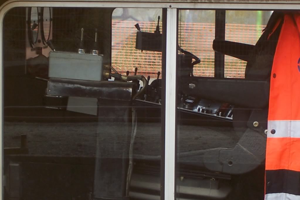 Les deux personnes sont en train de prendre des cotes pour les rentrer dans l'ordinateur de la bourreuse.