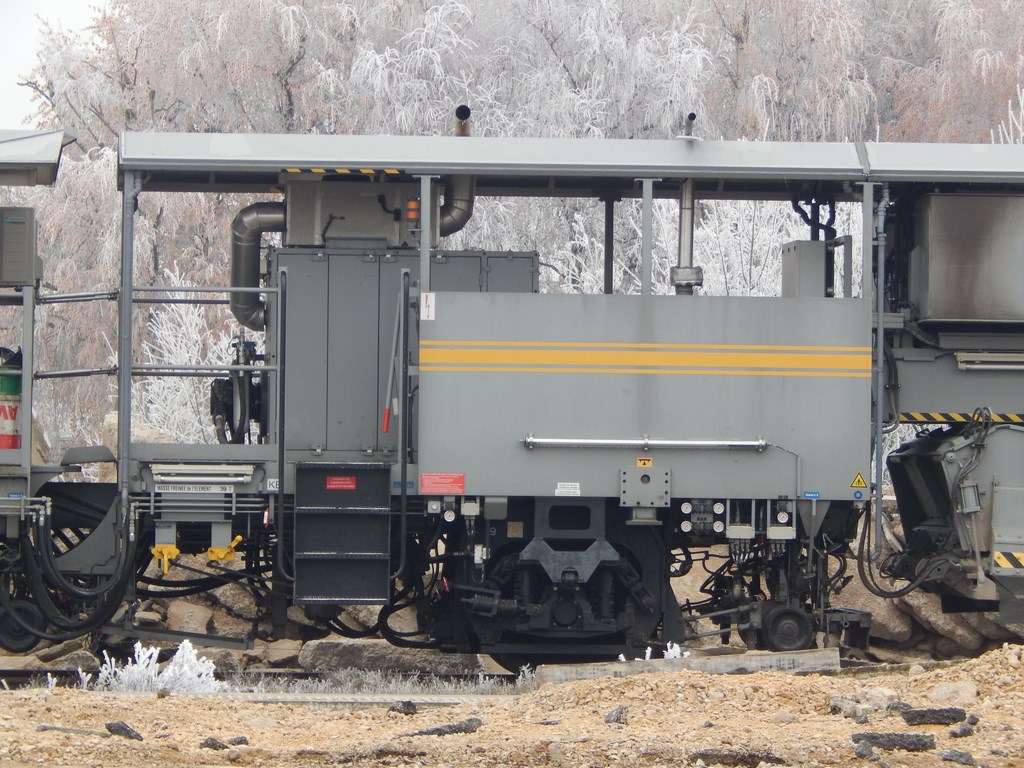 Bourreuse à avancement discontinu ! Si on regarde bien on constate qu'il n'y a pas de satellite d'avancement continu. La bourreuse s'arrête donc bien toutes les deux traverses.