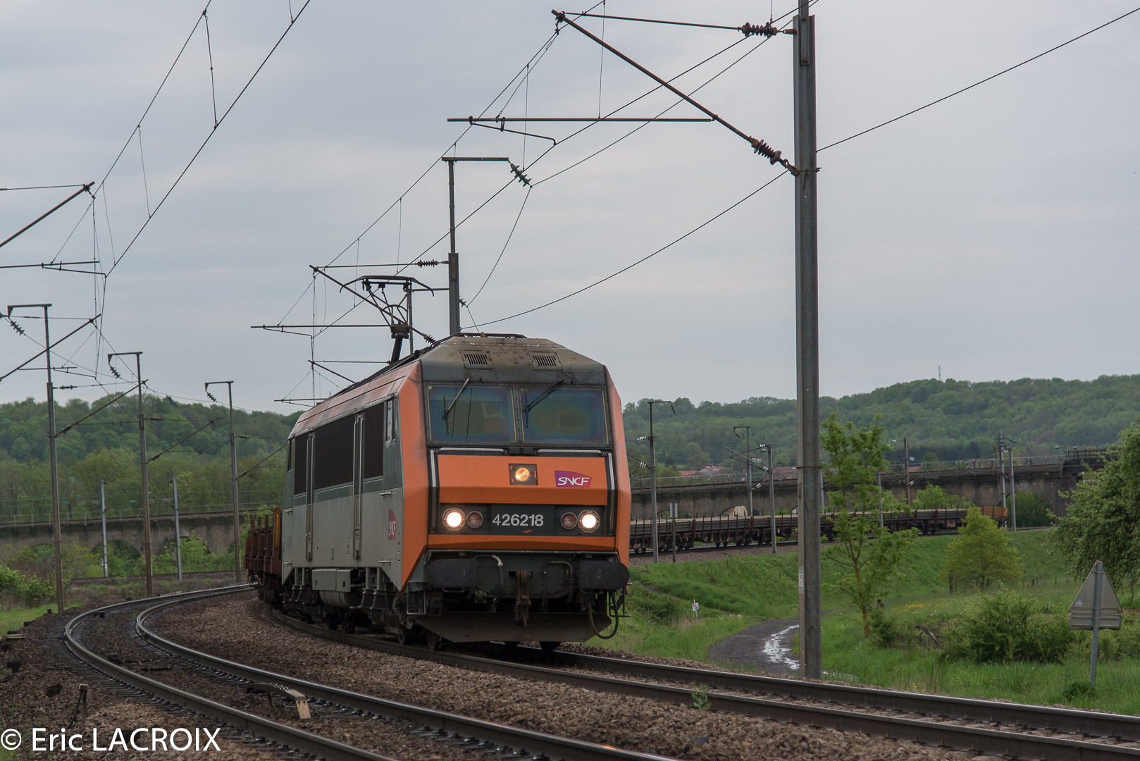 BB 26218 en tête d'un train de LRS arrive à Chalindrey en mai 2015.