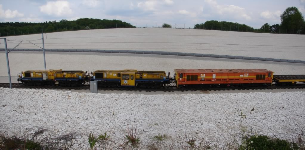 Sur la LGV Est pour la pose de la voie provisoire.