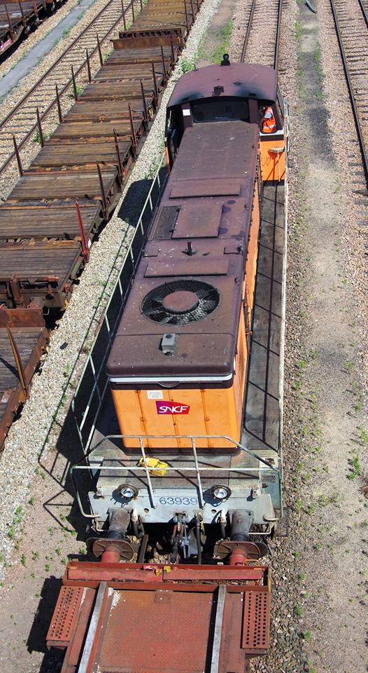 Voici la 63939 mise en service le 01 avril 1966 en livrée Arzens avec le logo Infra