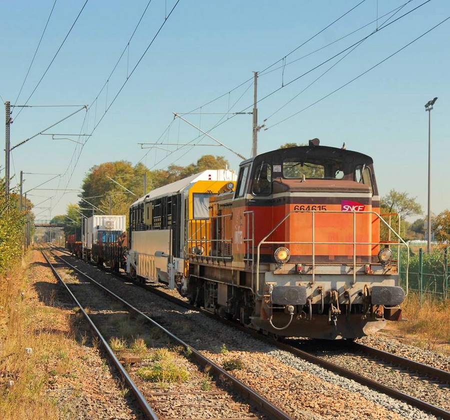 Voici le retour de la 664615 (ex 63587) en queue d'un TM à la sortie nord du dépôt de SPDC le dimanche 15-02-2015