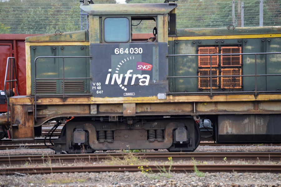 Et en voici un petit nouveau sur le forum .Il s'agit du 64030 durant les travaux a Hazebrouck en Octobre dernier .Celui ci venait de Calais vers Hazebrouck jusque le PN42 pour une opération de schuntage de voie .Avec mon ami Patrick (