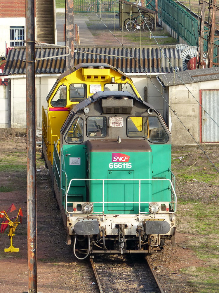 Voici la 666115 Infra avec le logo en livrée Fret (mise en service le 14-11-1962) avec la 669315 Infra en livrée bleue