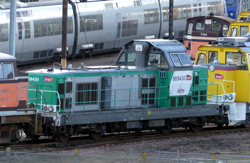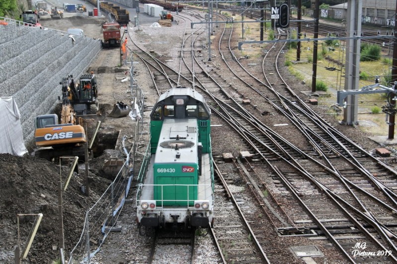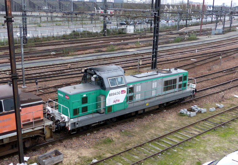 Voici la 669430 Infra avec le logo en livrée Fret (ex 66430 mise en service le 03-04-1969) en queue de TM passage par la gare de SPDC pour