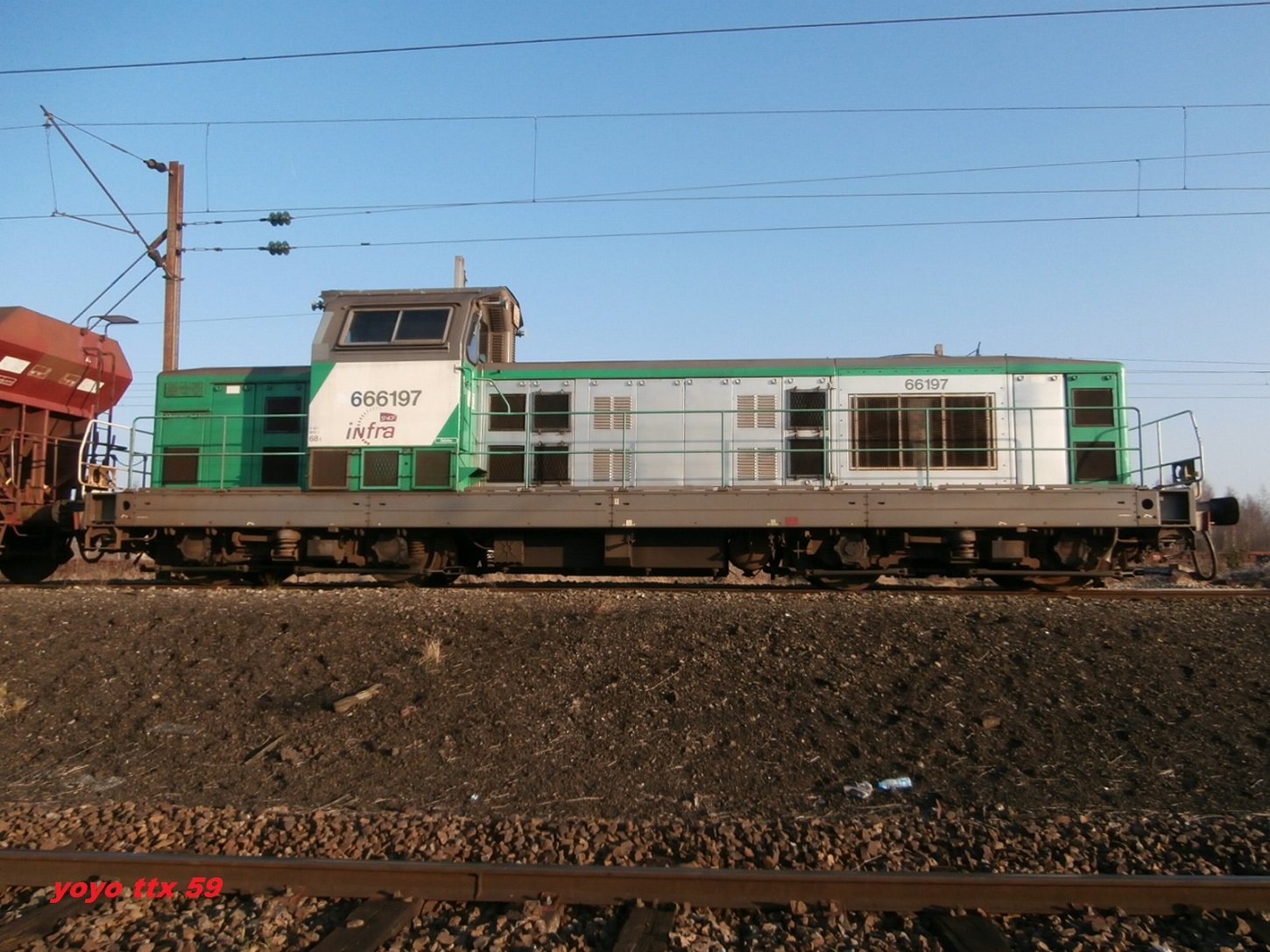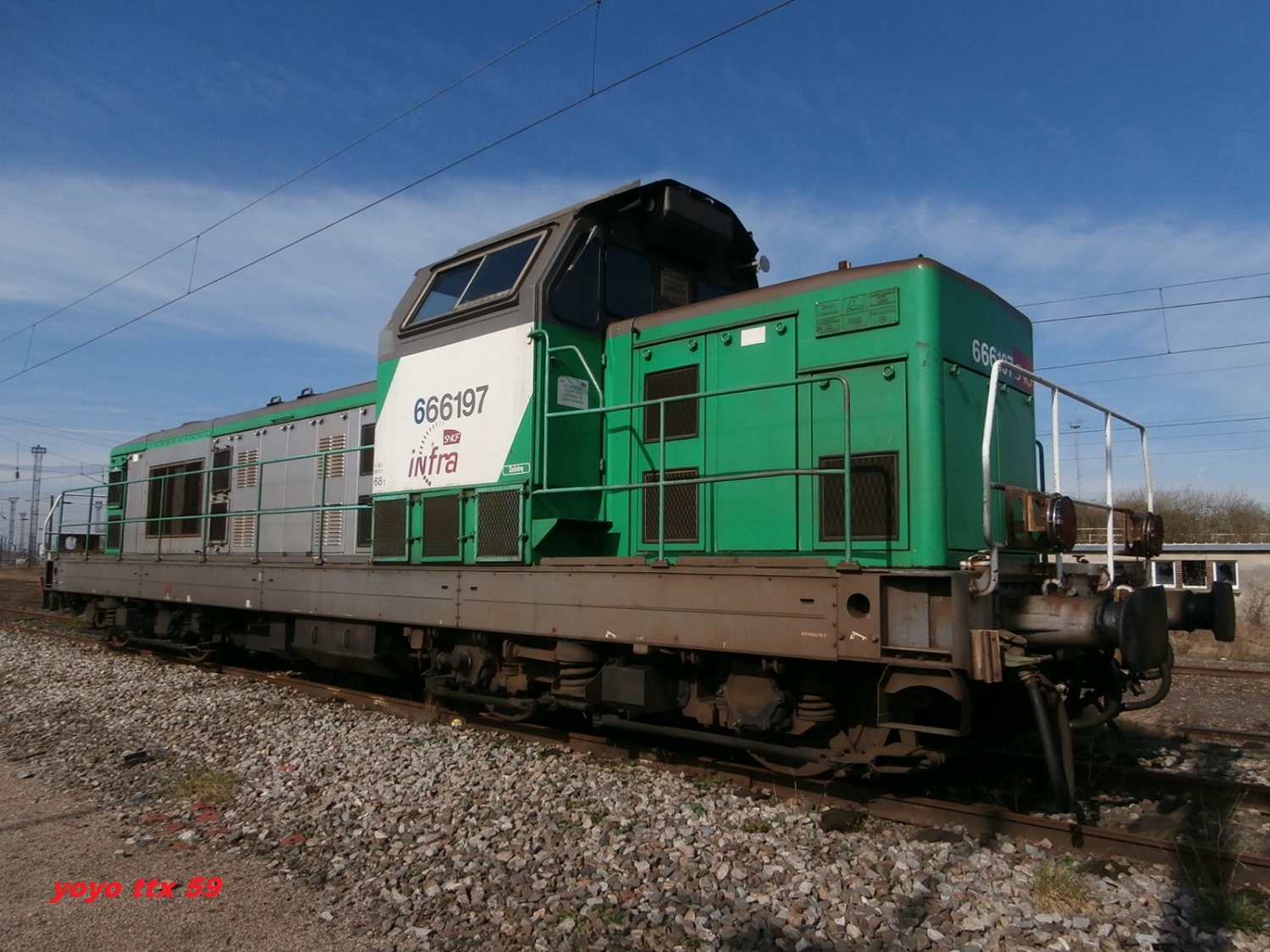 La voici avec les 66090 et la 22300 sur la zone de garage des rames Infra à Saint Pierre des Corps
