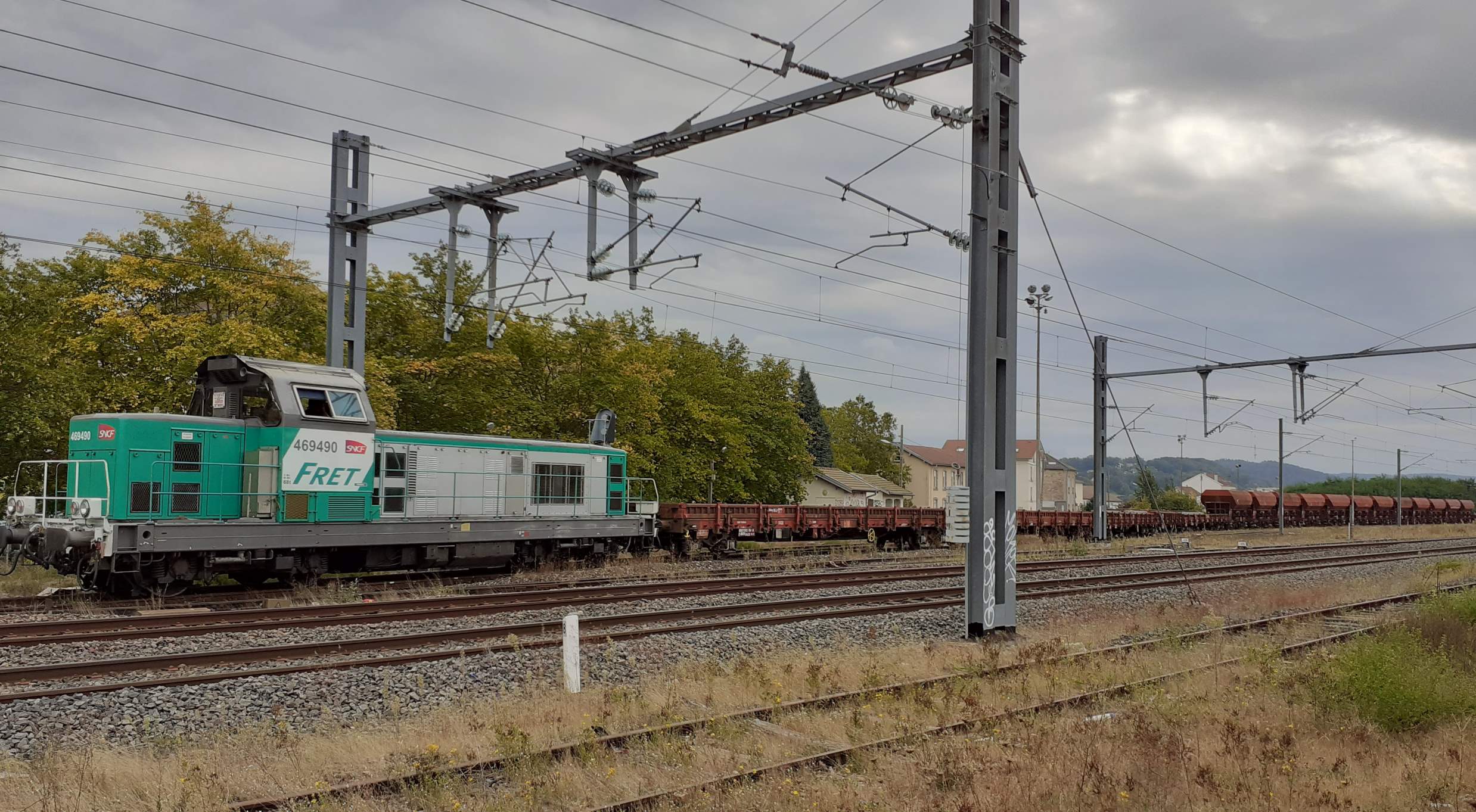 La voici acheminant du matériel pour la rénovation des voies au niveau de l'ancien quai militaire de la gare d'Epinal en octobre 2023.